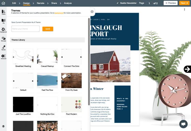 Themes are a selection of professionally designed, premade customizations you can apply to your LoudDoc. Try out multiple themes to see which one best helps convey your intended message.