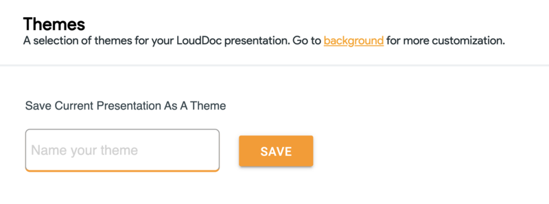 Obviously, being able to select a theme and apply it to your LoudDoc is the fastest way to make your LoudDoc presentation personalized and professional. So we've made it possible to save your own themes to your LoudDoc account, and make it easy to apply that theme to any LoudDoc you share.