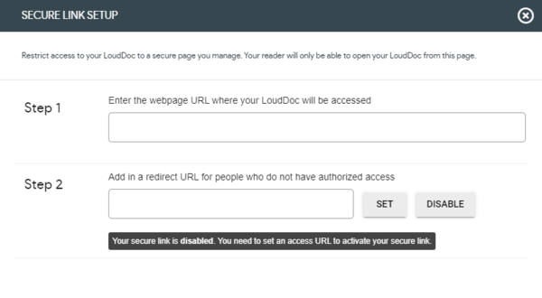 You can set your LoudDoc to only be accessed from a specific location on the web. This is a great tool if you are using LoudDoc for internal employee communications or on a customer portal, where the audience has already been credentialed to access information on this web page.